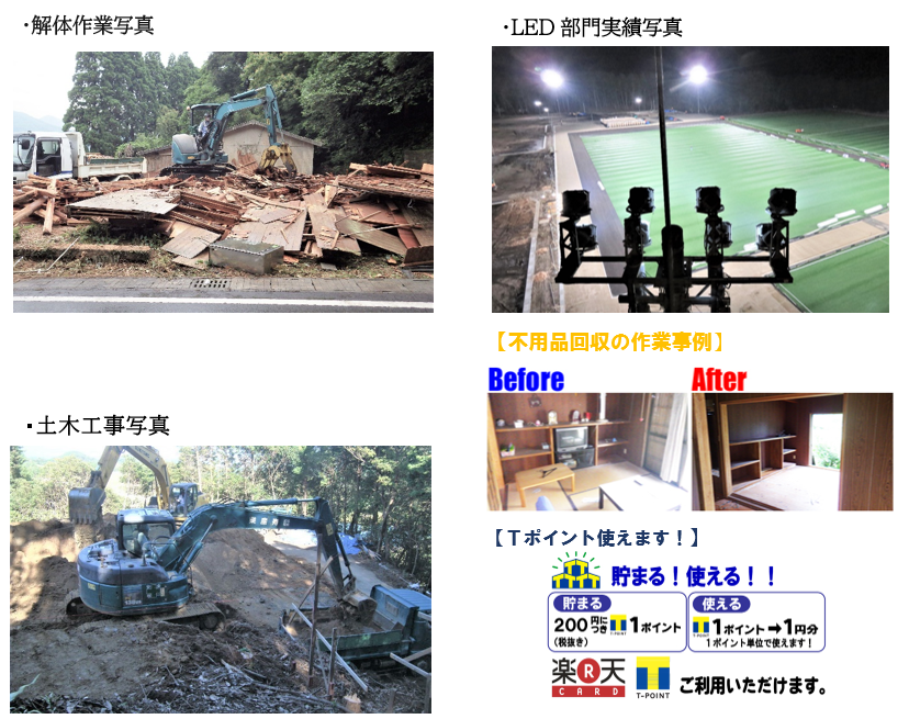 また、常に先見性を持ち地球環境との共生を図りつつ、新時代の建設業・リサイクル業・生活支援業のパイオニアとして、努力していく所存でございます。