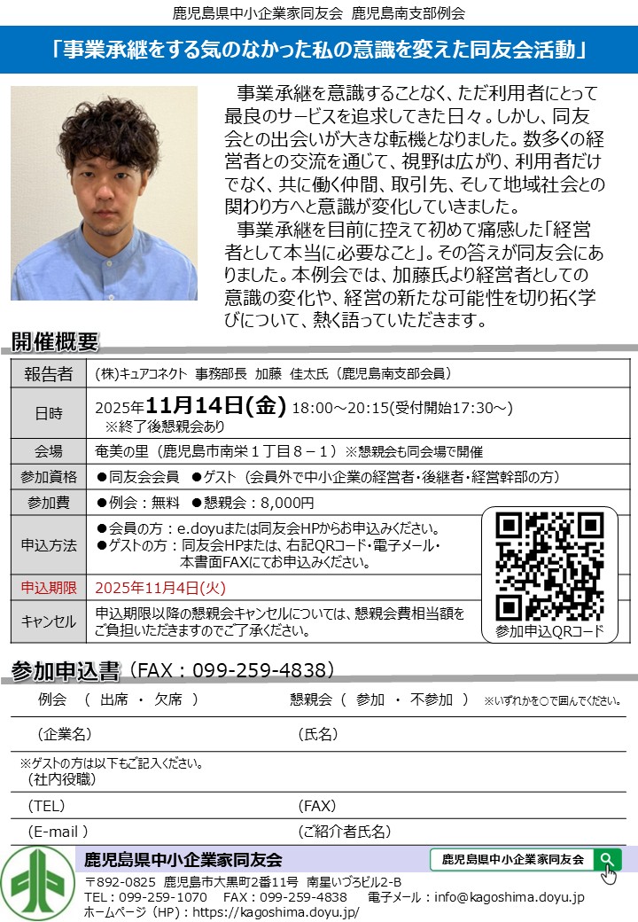 下記の日時で鹿児島中央北支部例会を開催いたします。