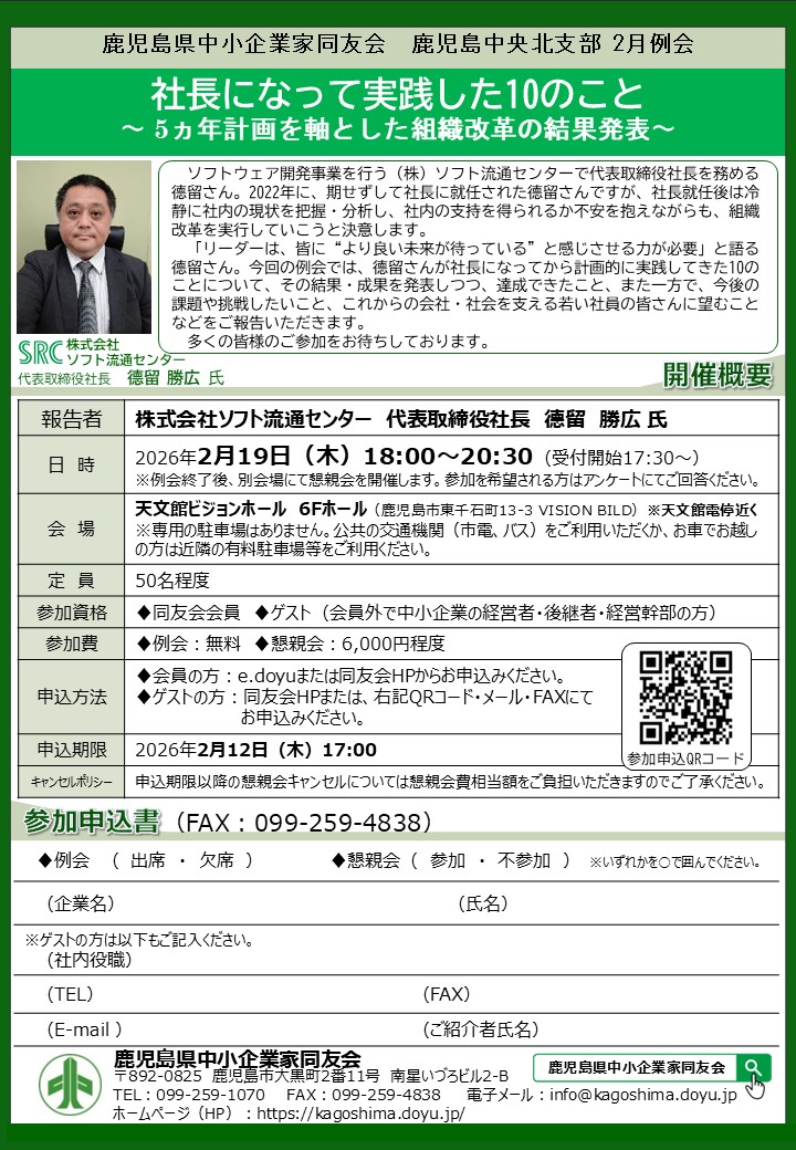 同友会の目的や理念をご理解頂き、積極的に活動に参加頂けるよう会の活動を