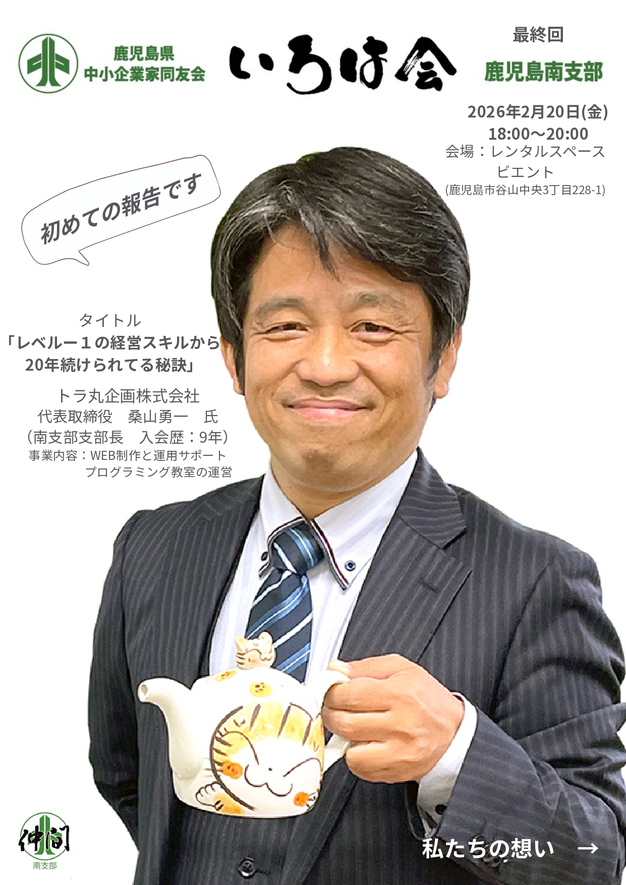 以下日程で南支部仲間づくり委員会(増強チーム)主催で第6回【いろは会】を開催いたします。