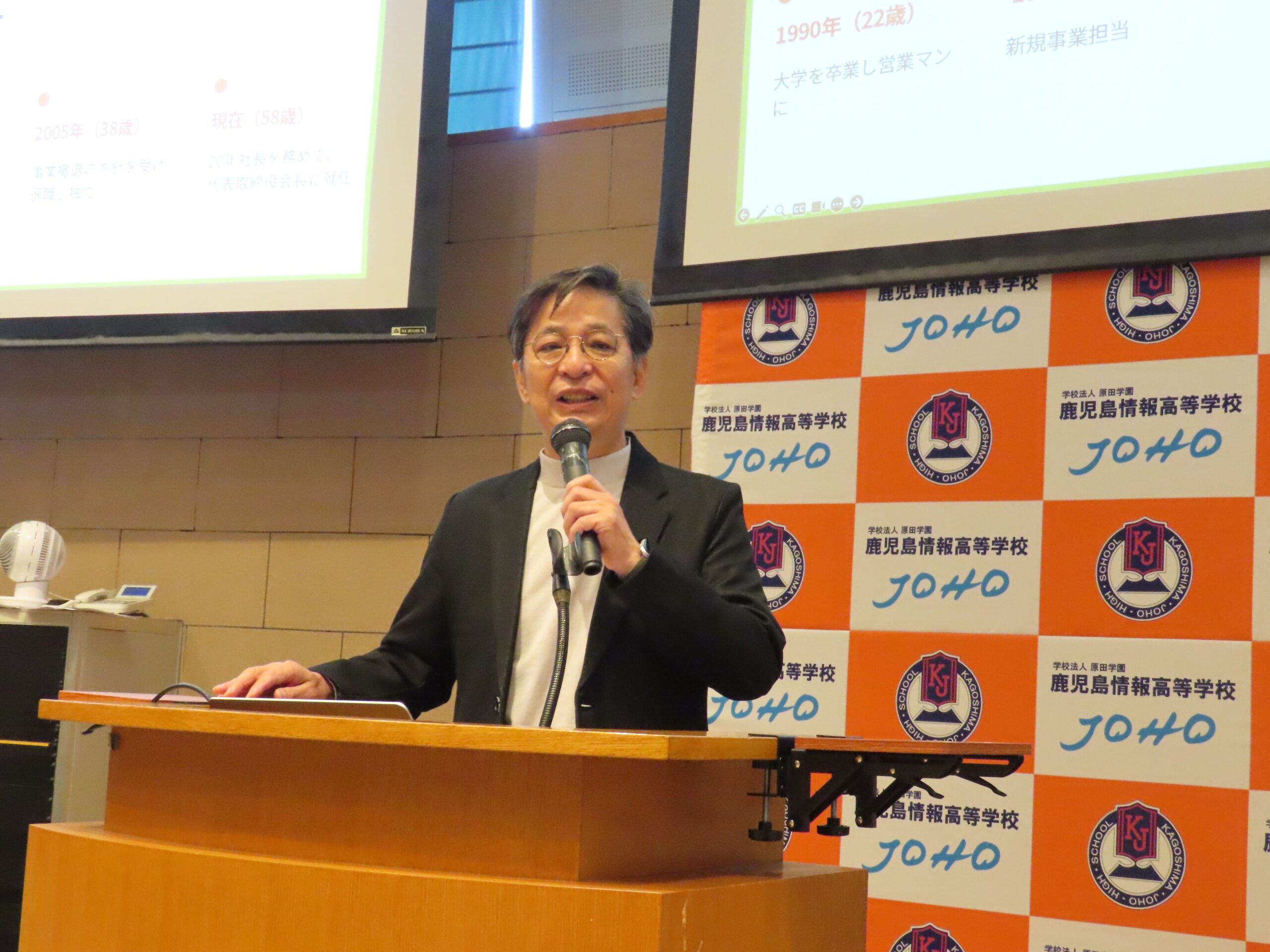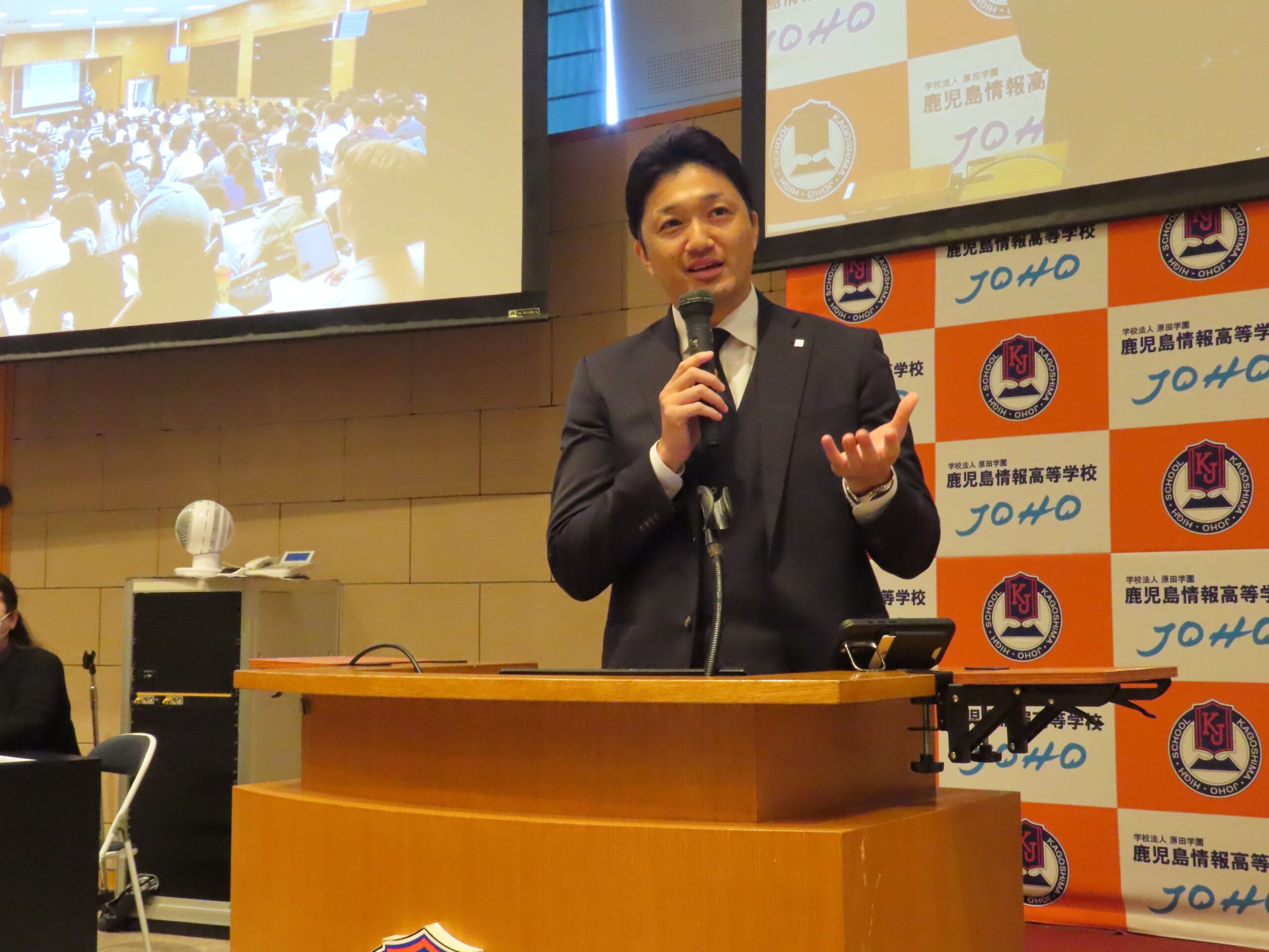 鹿児島情報高等学校は1年生の生徒375名、会員企業44社82名の経営者・社員の皆さんが参加されました。
